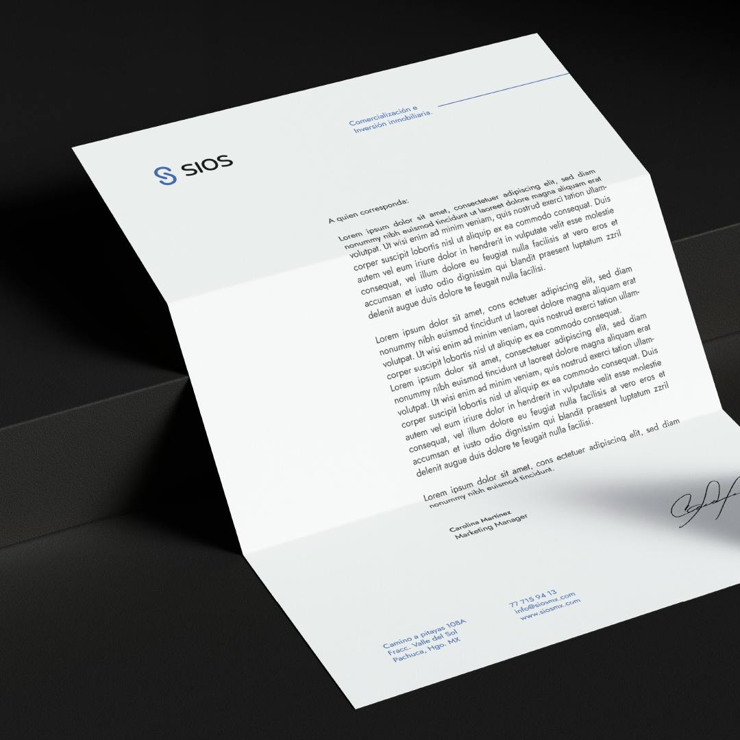 SIOS pertenece a un Grupo inmobiliario siendo esta la marca que comercializa los proyectos propios de la inmobiliaria así como otros bienes inmuebles. Este fue un proyecto de rebranding ya que se requería cambiar el nombre anterior el cuál era Spazios debido a la saturación del nombre en la industria y su complejidad al escribirlo.